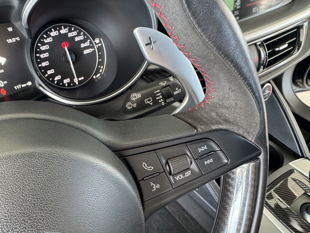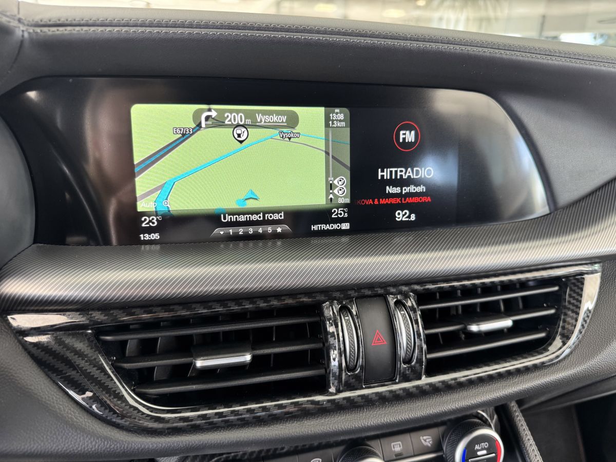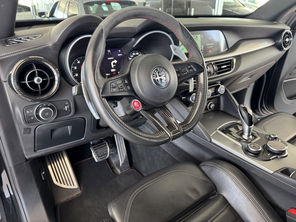 Perfektní technický stav i vzhled vozu bez poškození, velmi zachovalý vůz po prvním majiteli s kompletní servisní historií. Poslední servis 02/2026 při 72tis. km. První registrace 10/2018, provoz od 01/2019. Nejvyšší výbavové provedení Veloce, kůží Nappa potažená palubní deska a plochy dveří, bezklíčové odemykání a startování, adaptivní tempomat, asistent jízdy v pruzích, asistent mrtvého úhlu, parkovací kamera + senzory vzadu i vpředu, satelitní navigace, sportovní kožená vyhřívaná el. stavitelná sedadla s paměťovou funkcí, sportovní vyhřívaný volant s řazením pádly, prémiový audiosystém Harman/Kardon, regulace tuhosti podvozku, sportovní výfukový systém s el. otevíratelnou klapkou, zatmavení zadních oken, el. víko zavazadelníku, 20" orig. kola z lehkých slitin. Více na tel. +420 605 099 999.
