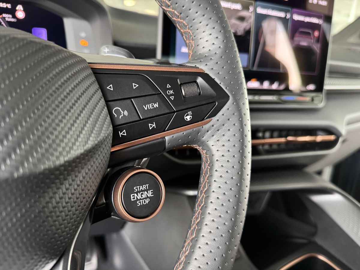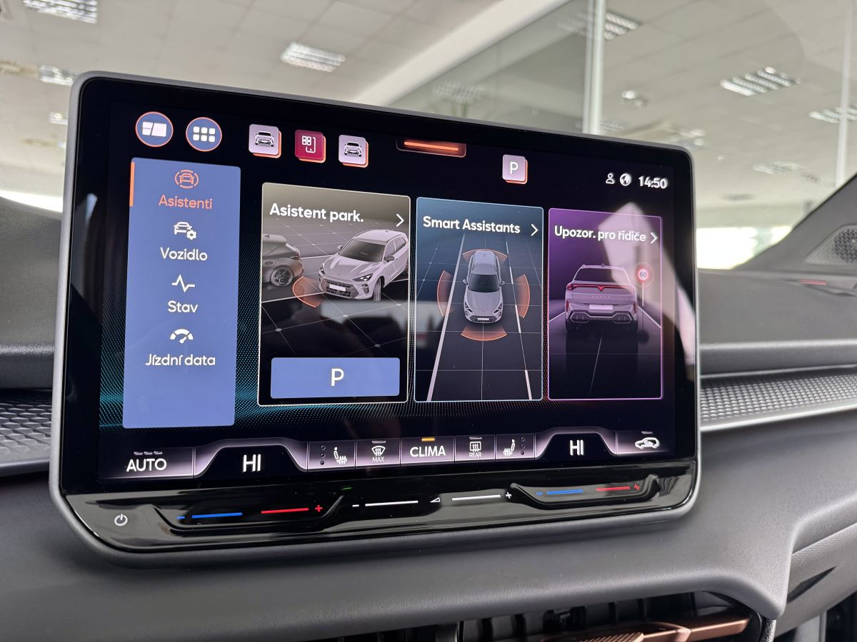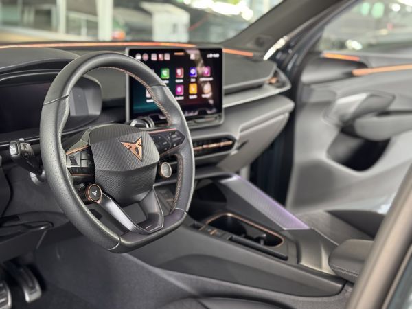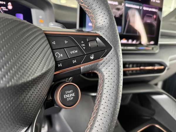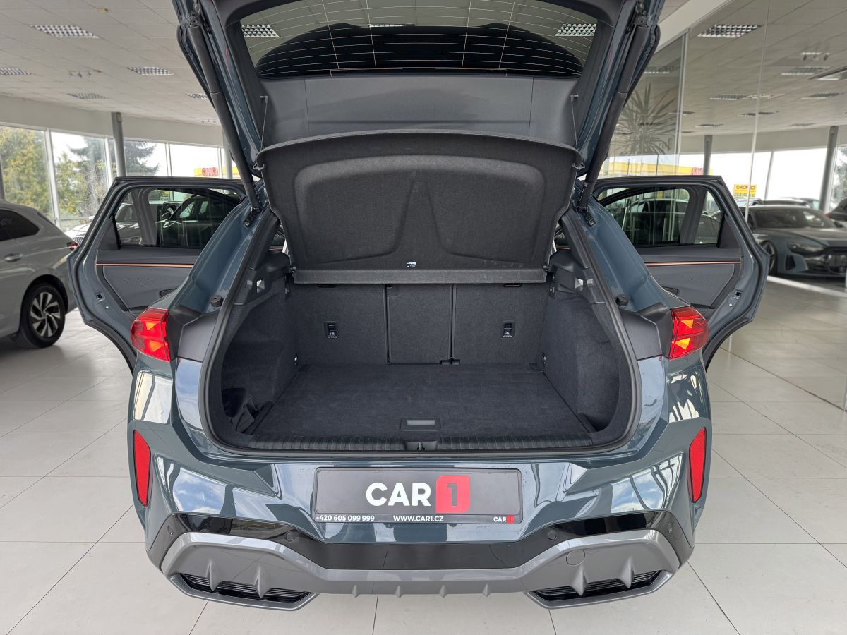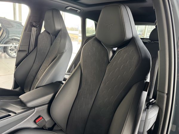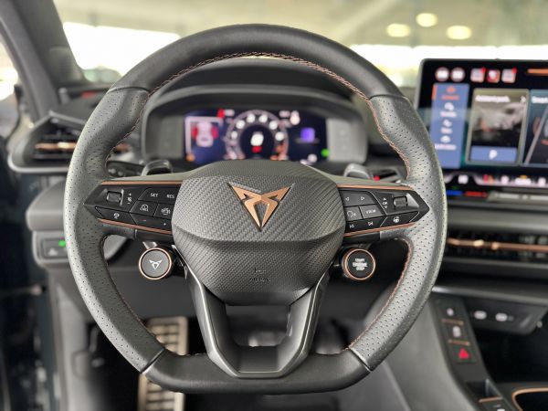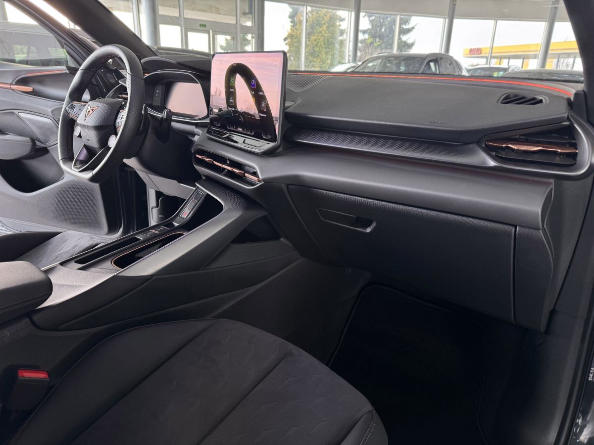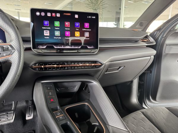 Stav nového vozu, plná tovární záruka do 05/2028. Pořizovací cena nového vozu 1.56mil. Kč. Nejsilnější motorizace o výkonu 195kW, pohon všech kol, Matrix LED přední světlomety, adaptivní tempomat, asistent jízdy v pruzích, parkovací kamera + senzory vzadu i vpředu, panoramatické střešní okno, navigační systém 12,9" s Cupra Connect včetně funkce Apple car play a Android auto, digitální přístrojový štít plus, bezklíčové odemykání a startování, 3-zónová aut. klimatizace, sportovní vyhřívaná el. stavitelná sedadla v provedení kůže/alcantara, paměťová funkce sedadla řidiče, sportovní vyhřívaný multifunkční volant s řazením pádly, ambientní osvětlení interiéru, prémiový audiosystém Sennheiser, zatmavení zadních oken, el. víko zavazadelníku, 19" orig. kola z lehkých slitin. Více na tel. +420 605 099 999.