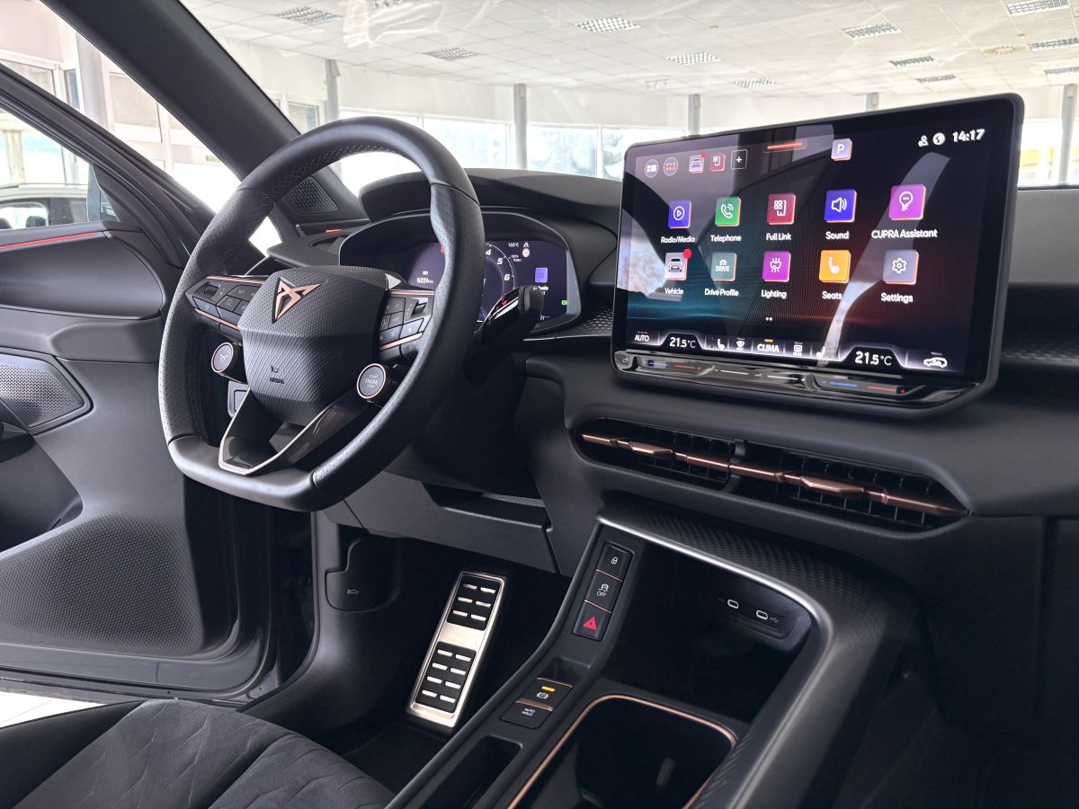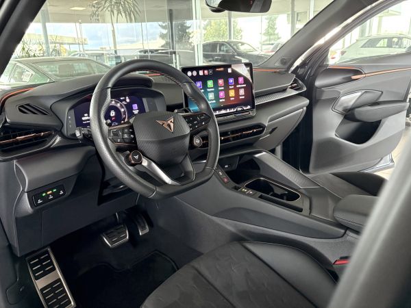 Stav nového vozu, plná tovární záruka do 05/2028. Pořizovací cena nového vozu 1.56mil. Kč. Nejsilnější motorizace o výkonu 195kW, pohon všech kol, Matrix LED přední světlomety, adaptivní tempomat, asistent jízdy v pruzích, parkovací kamera + senzory vzadu i vpředu, Head-Up display, panoramatické střešní okno, navigační systém 12,9" s Cupra Connect včetně funkce Apple car play a Android auto, digitální přístrojový štít plus, bezklíčové odemykání a startování, 3-zónová aut. klimatizace, sportovní vyhřívaná el. stavitelná sedadla v provedení kůže/alcantara, paměťová funkce sedadla řidiče, sportovní vyhřívaný multifunkční volant s řazením pádly, ambientní osvětlení interiéru, prémiový audiosystém Sennheiser, zatmavení zadních oken, el. víko zavazadelníku, 19" orig. kola z lehkých slitin. Více na tel. +420 605 099 999.